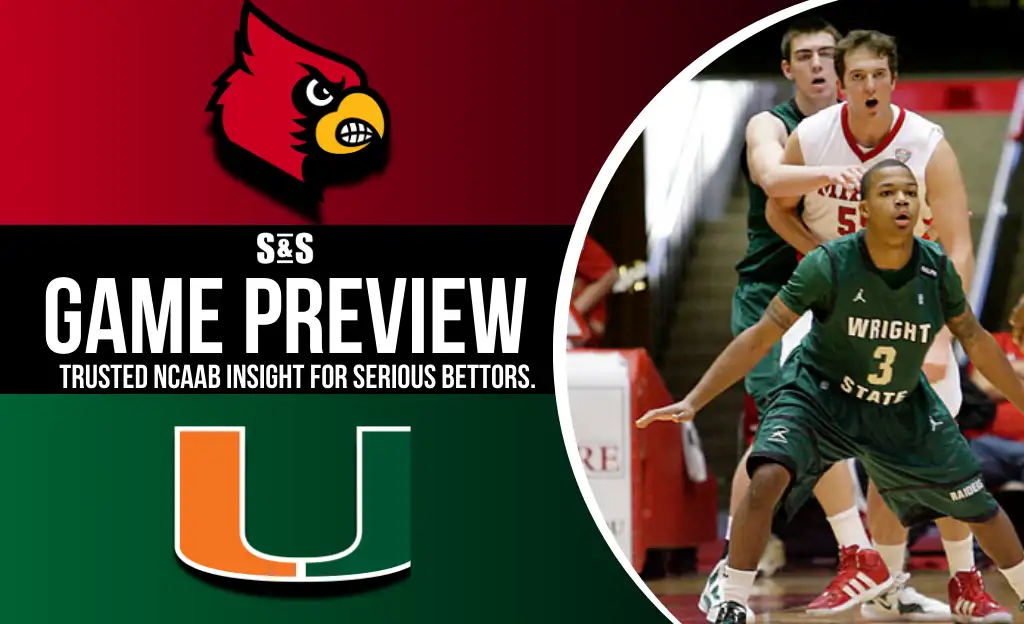 Louisville enters the matchup as a slight favorite, reflecting a relatively even contest between two teams capable of scoring in bursts. The Cardinals typically lean on aggressive perimeter play and tempo to create offensive opportunities, while Miami brings a balanced attack built on guard play and half-court execution.