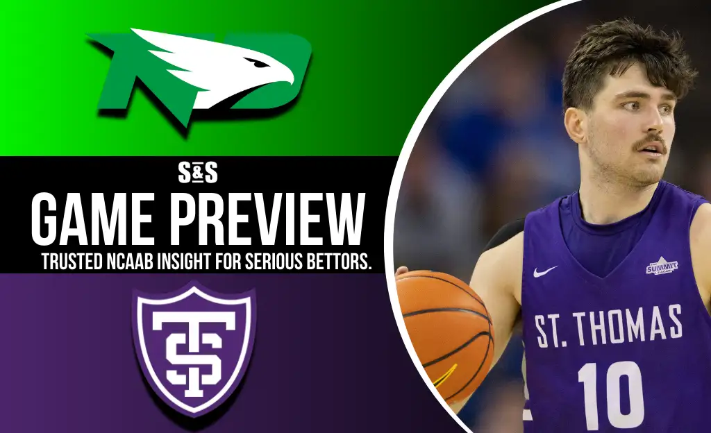 The North Dakota Fighting Hawks and St. Thomas (MN) Tommies meet Saturday night at the Denny Sanford Premier Center in Sioux Falls, South Dakota. Tipoff is scheduled for 10:30 PM ET in this neutral-site matchup featuring two Summit League programs with contrasting betting expectations.