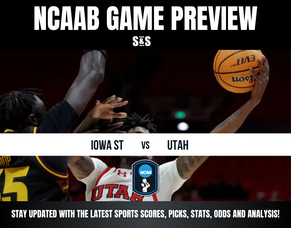 NCAA basketball game preview featuring San Diego State vs. Utah State, with a player in action and a basketball in hand.